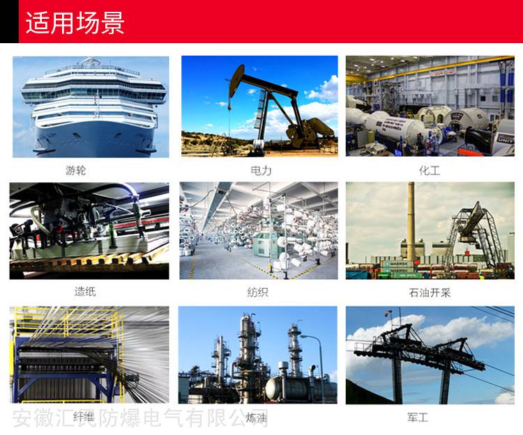 5.適用于石油石化、化工、釀酒、醫(yī)藥、油漆、紡織、印染設施等爆炸性危險環(huán)境;